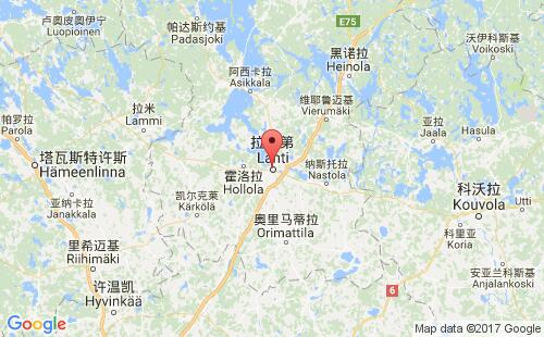 | 港口介绍 | [拉赫蒂港口位置如地图所示。, 拉赫蒂(lahti)地理经度:25.6612096,纬度:60.9826749。欧洲内陆点航线主要港口之一, 拉赫蒂(Lahti)是芬兰的一个城市,拥有99,096居民。坐落在Vesijärvi湖畔。拉赫蒂于1905年从霍罗拉分离出来的部分成立的一座城市。城市的市徽是一个燃烧的火车轮。, 拉赫蒂是芬兰重要的海运港口,更多芬兰港口信息及新闻请参考下面列表。] 拉赫蒂港口位置如地图所示 |