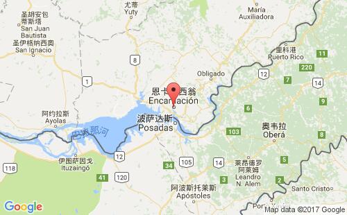 | 港口介绍 | [恩卡纳西翁港口位置如地图所示。, 恩卡纳西翁(encarnacion)地理经度:-55.9135867,纬度:-27.2522918。南美东航线主要港口之一, 恩卡纳西翁(Encarnacion)位于巴拉圭南部与阿根廷交界处的亚拉那河畔,与阿根廷城市波萨达斯隔河相望,人口69,769人。 巴拉圭前总统阿尔弗雷多·斯特罗斯纳出生于恩卡纳西翁。, 恩卡纳西翁是巴拉圭重要的海运港口,更多巴拉圭港口信息及新闻请参考下面列表。] 恩卡纳西翁港口位置如地图所示 |